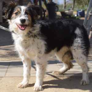 Gerbera ist eine bildhübsche Hündin, die wahrscheinlich ein Border Collie Mischling ist. Geboren im September 2025, hat sie eine Größe von etwa 40 cm. Sie wurde gemeinsam mit ihrer Schwester Nancy in einer abgelegenen Gegend gefunden und von uns aufgenommen, nachdem wir informiert wurden.