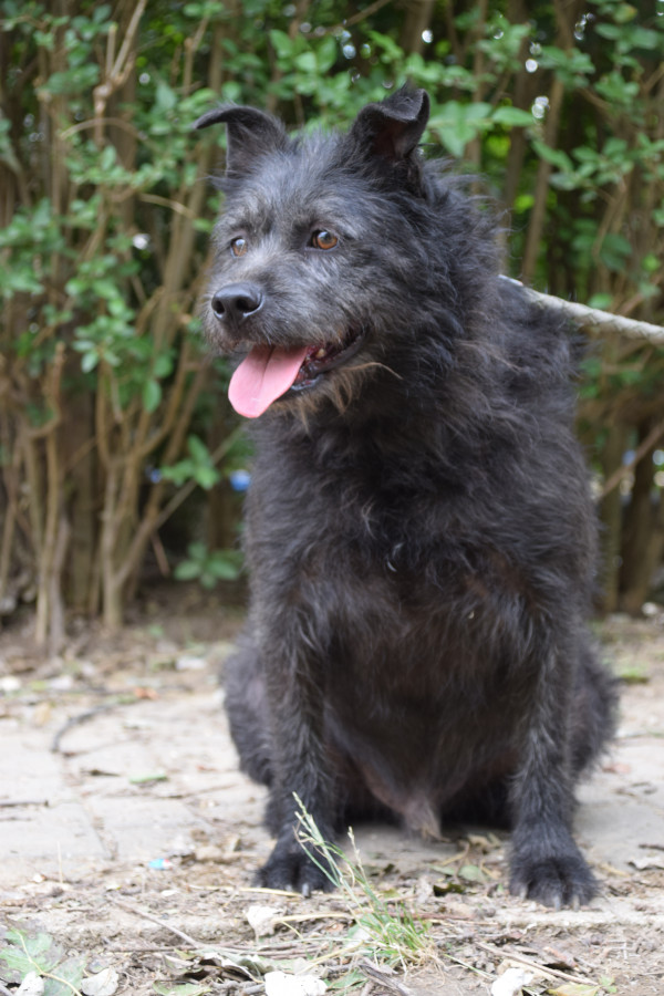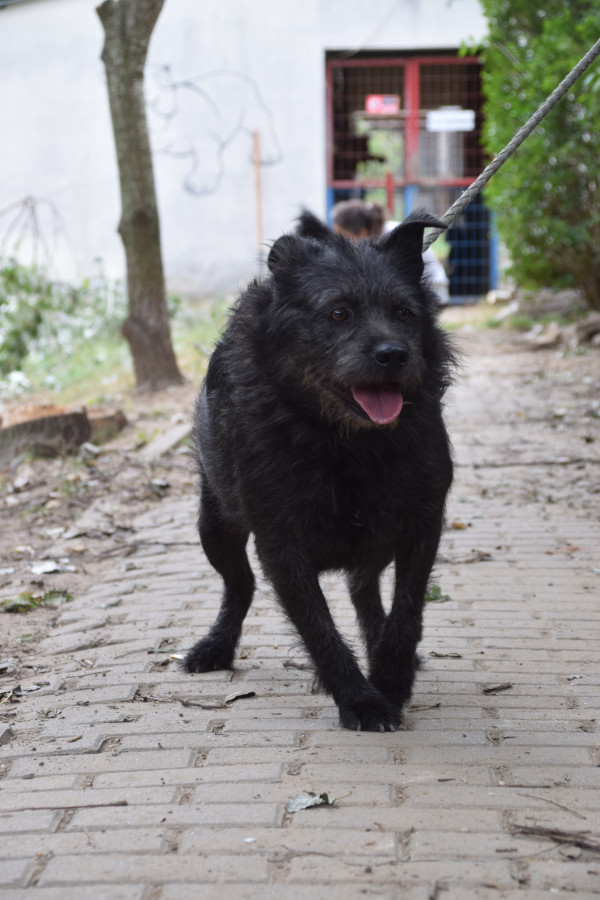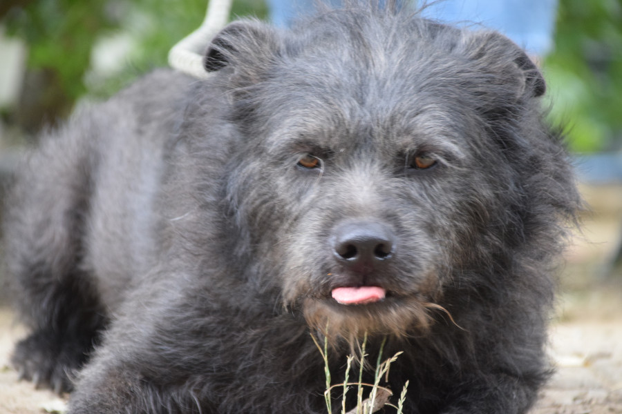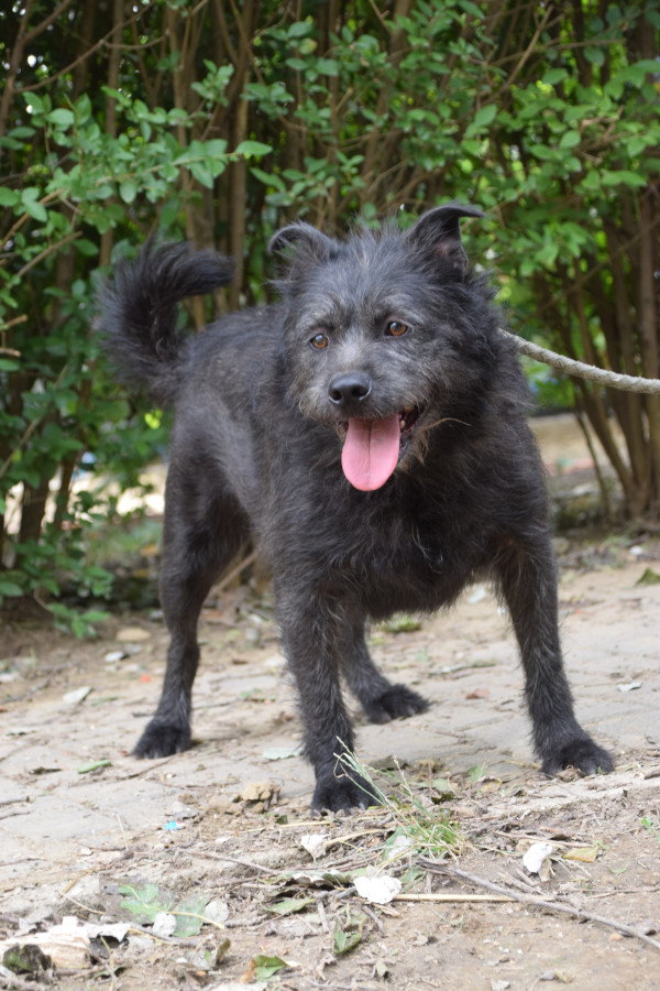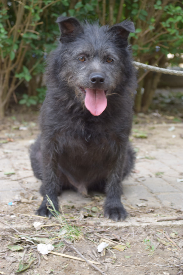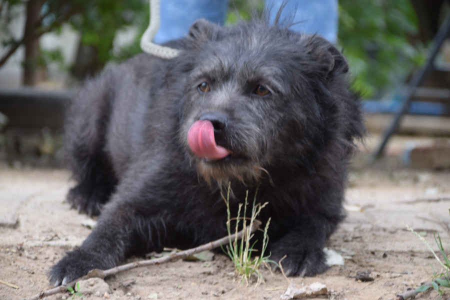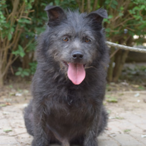 Dios Mama ist eine Shar-Pei-Mix Hündin. Er ist gesund, hat jedoch Kummerspeck, der durch den tristen Tierheimalltag entstanden ist. Dio muss etwas abnehmen. Der Rüde ist hundeverträglich, zeigt jedoch eine gewisse Dominanz gegenüber anderen Rüden. Sein Umgang mit Katzen ist unbekannt. Testen wir aber gerne. Dio ist leinenführig, zieht aber aktuell beim Spaziergang an der Leine. Er ist freundlich zu Kindern, jedoch sollten diese nicht mit ihm spazieren gehen, da er zu stark zieht. Dio ist verschmust, wenn auch nicht so sehr wie seine Mutter. Er ist anfangs etwas scheu, aber freundlich und verspielt. Sein Aktivitätslevel ist mittlerer Natur.