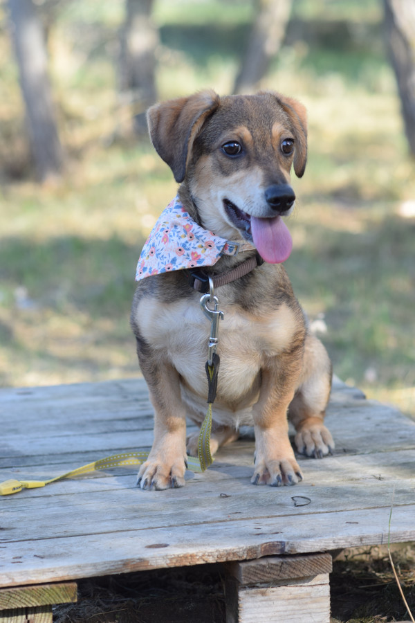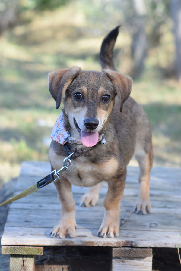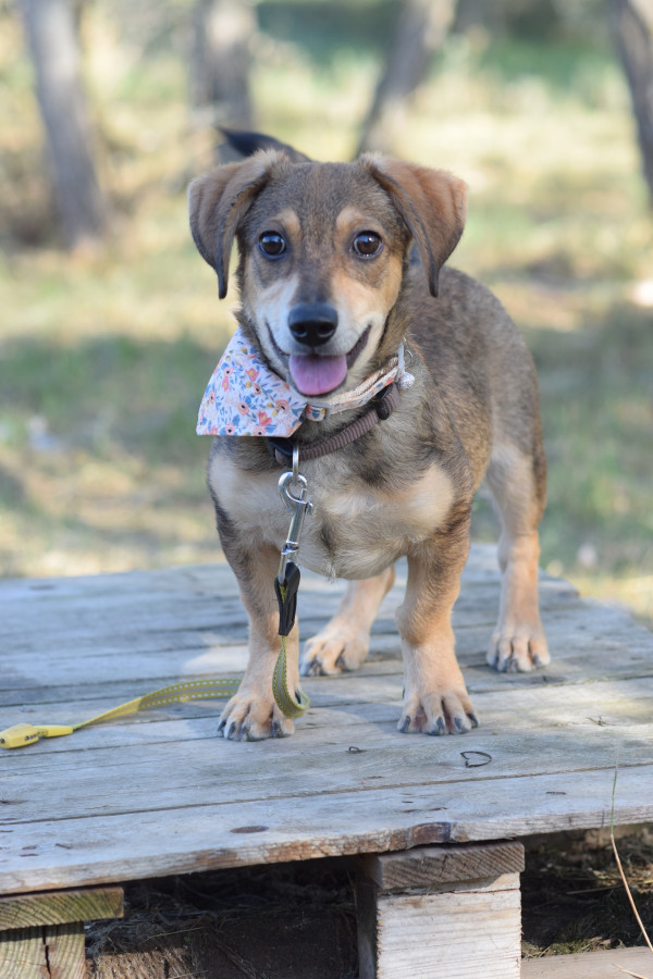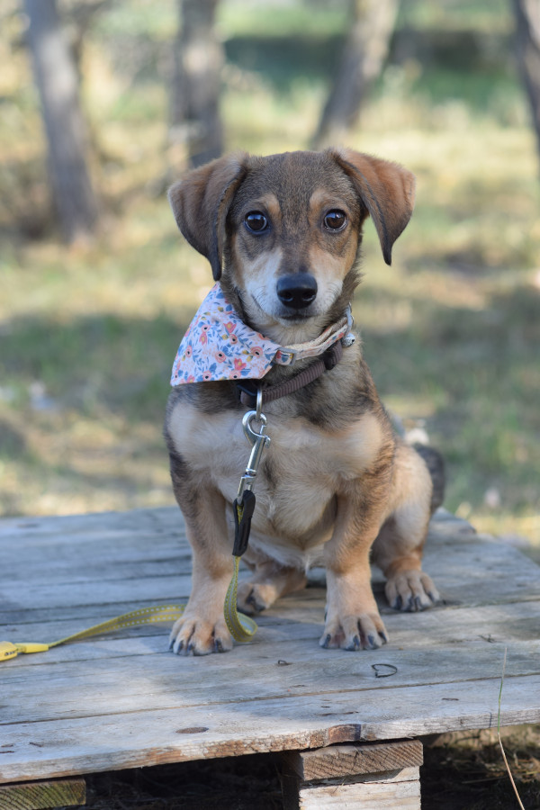 Biene ist ein junger Dackel Mischling. Biene wurde zusammen mit ihrer Mutter Amelie auf der Straße gefunden und zunächst in eine Tötungsstation gebracht. Leider konnte Amelie nicht sofort gesichert werden, da sie zu ängstlich war. Nachdem wir Biene in Sicherheit gebracht hatten, gelang es uns, auch die scheue Amelie zu retten.