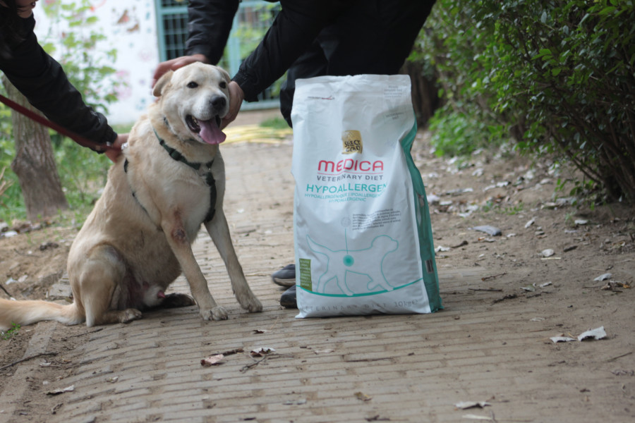 Yukka ist ein Shar Pei Mischling, der in einem schlechten Zustand im Wald gefunden wurde. Seine Haut war damals komplett infiziert und wund, was eine intensive Pflege erforderlich machte. Heute ist seine Haut dank hypoallergenem Futter, das er aufgrund von Unverträglichkeiten gegenüber unbekannten Substanzen benötigt, in einem guten Zustand.