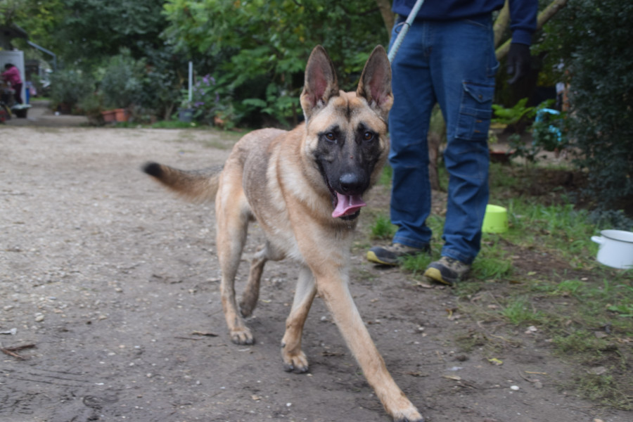 Sammy ist ein imposanter Malinois Mischling-Rüde, der seit August 2024 im Tierheim lebt. Er tauchte unerwartet vor dem Tierheim auf, etwa eine Woche nachdem die Malinois Hündin Amy am selben Ort gesichert wurde.