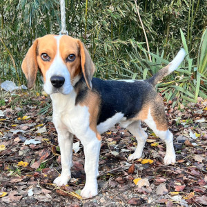 Basti ist ein Beagle, der ca. im November 2022 geboren wurde. Seit November 2025 lebt er im Tierheim, nachdem er auf dem Mittelstreifen einer Autobahn an die Leitplanken angebunden und ausgesetzt wurde.